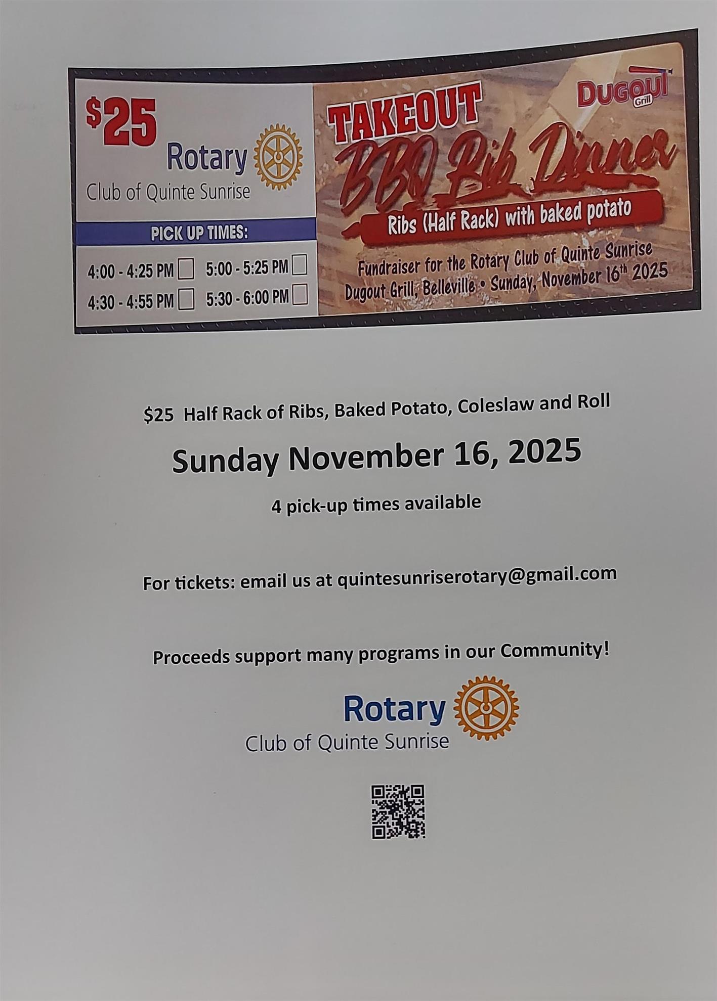 Proceeds will help fund our Youth Initiatives like the Rotary Music Festival, the Rotary Spelling Bee, Bayside Secondary Scholarship, Quinte Sailability and Challenger Baseball.